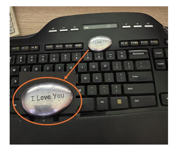 A few months ago, when I was at peak frustration and struggling to figure out how to stay positive amidst my churning career field and an unknown future, I found this on my computer keyboard. It made me smile. The hub’s support remains steadfast and true despite the challenges and the unknowns. Lucky me.